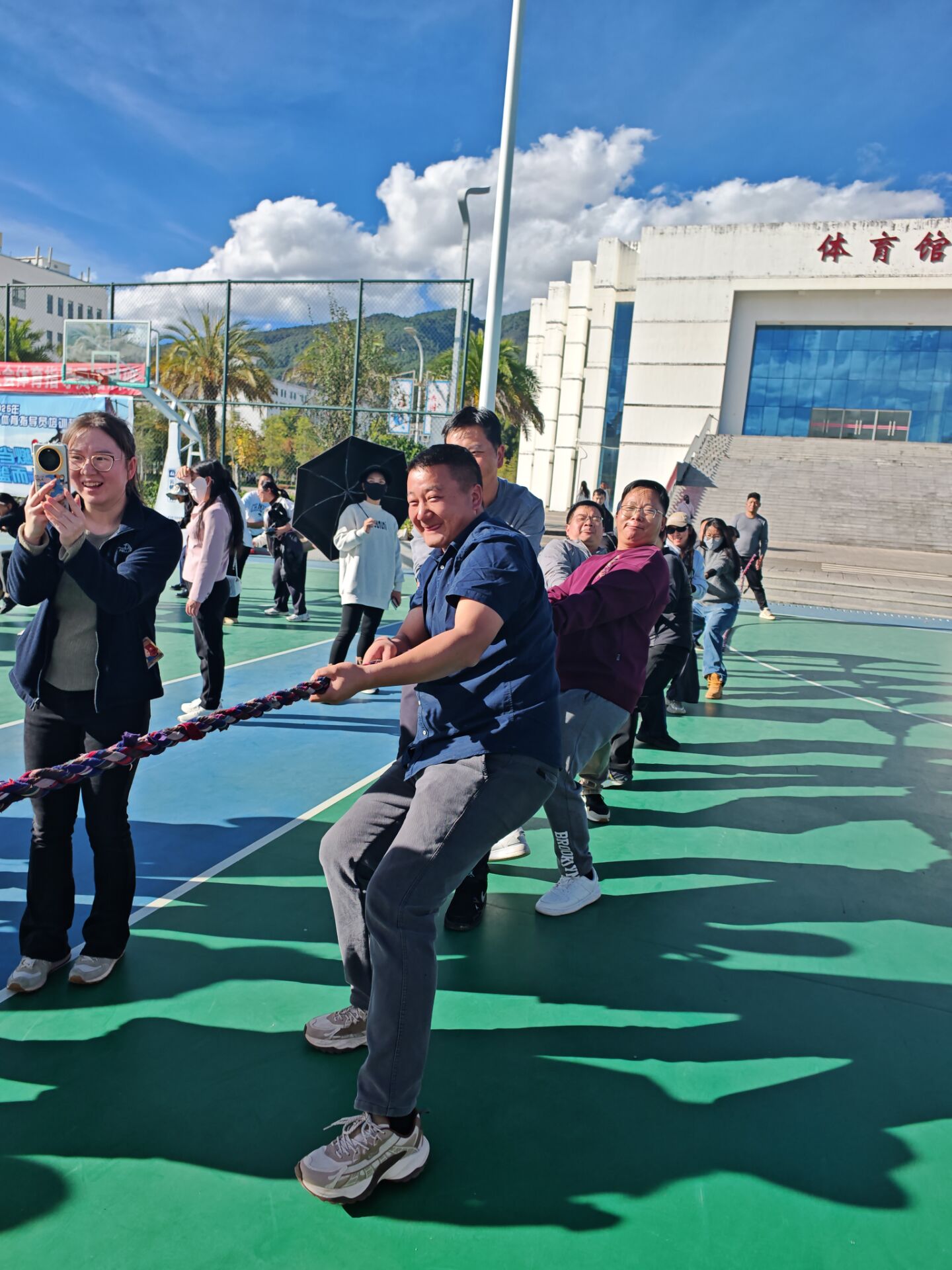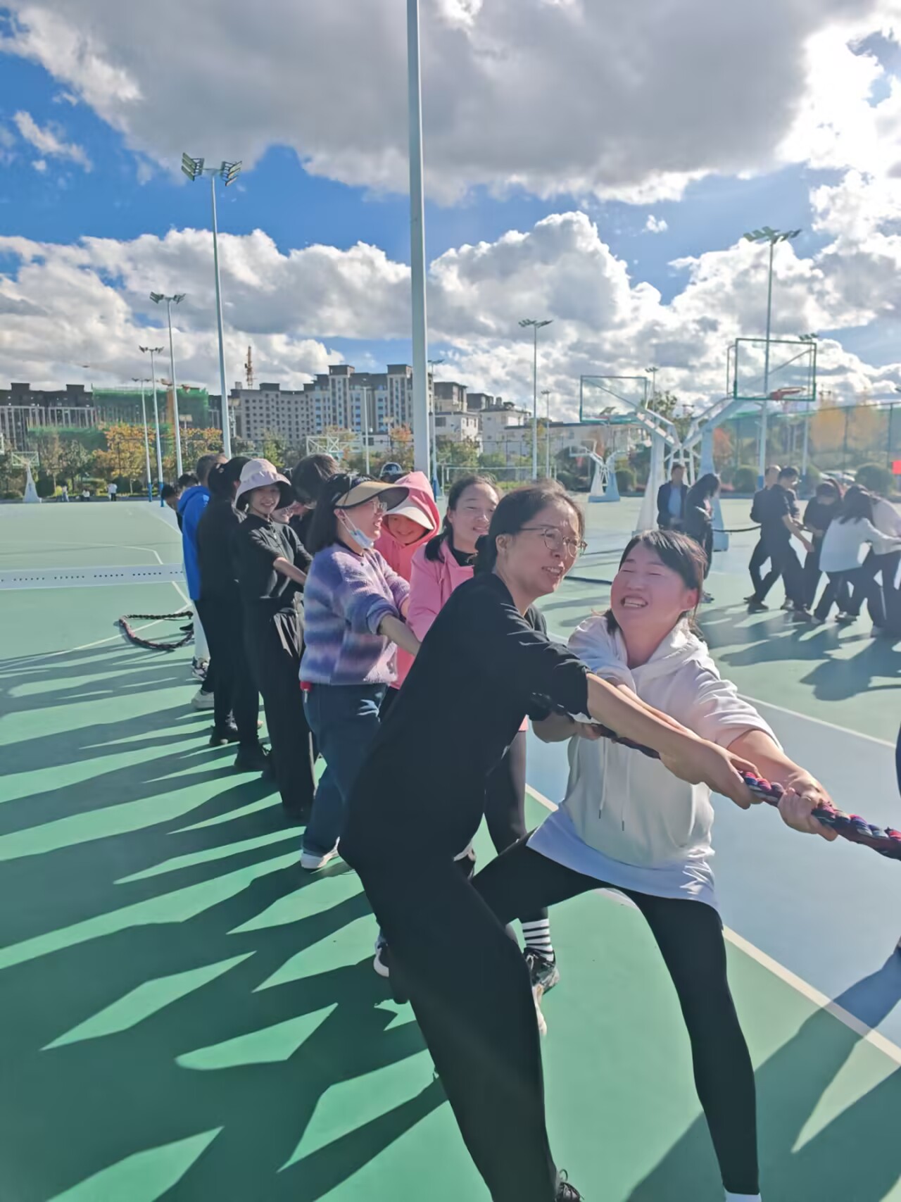 力量的角逐与意志的较量,将现场气氛一次次推向高潮。无论男女教职工,大家皆全力以赴。拔河与板鞋竞速不仅考验个人的力量与速度,更考验团队的协作与战术配合。现场气氛欢声不断、笑语连连,充分营造出丽师大家庭“一家人、一条心、一股绳”的浓厚氛围。